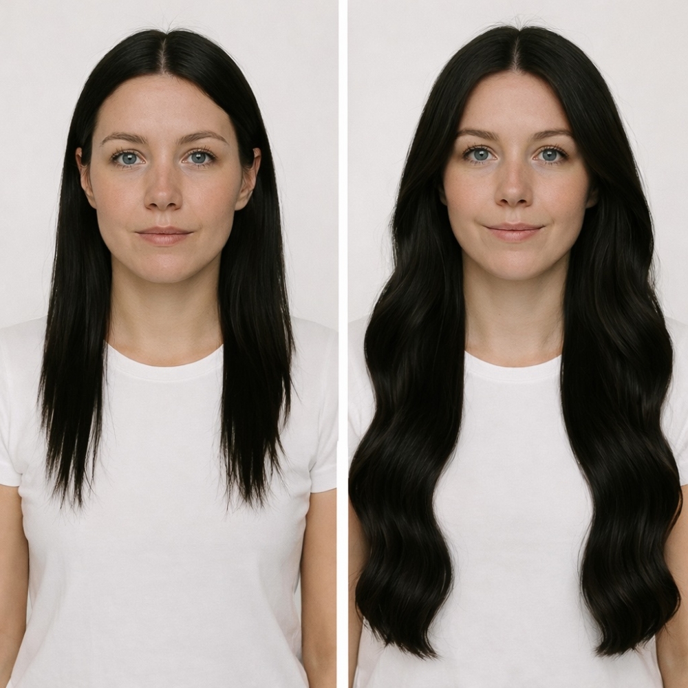 • Børst forsiktig gjennom for å blande ditt eget hår med extensionene.